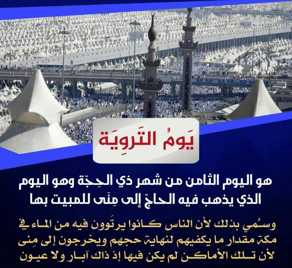 هو اليوم الثامن من شهر ذي الحجة سمية بهذا الاسم لأن الناس كانوا يرتوون فيه من الماء في مكة مقدار ما يكفيهم لنهاية حجهم ويخرجون إلى منى لأن تلك الأماكن لم يكن فيها إذ ذاك آبار ولا عيون. والصيام في هذا اليوم من السُنن المؤكدة عن الرسول -صلى الله عليه وسلم.-