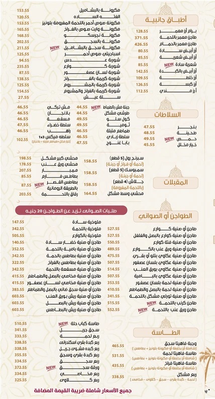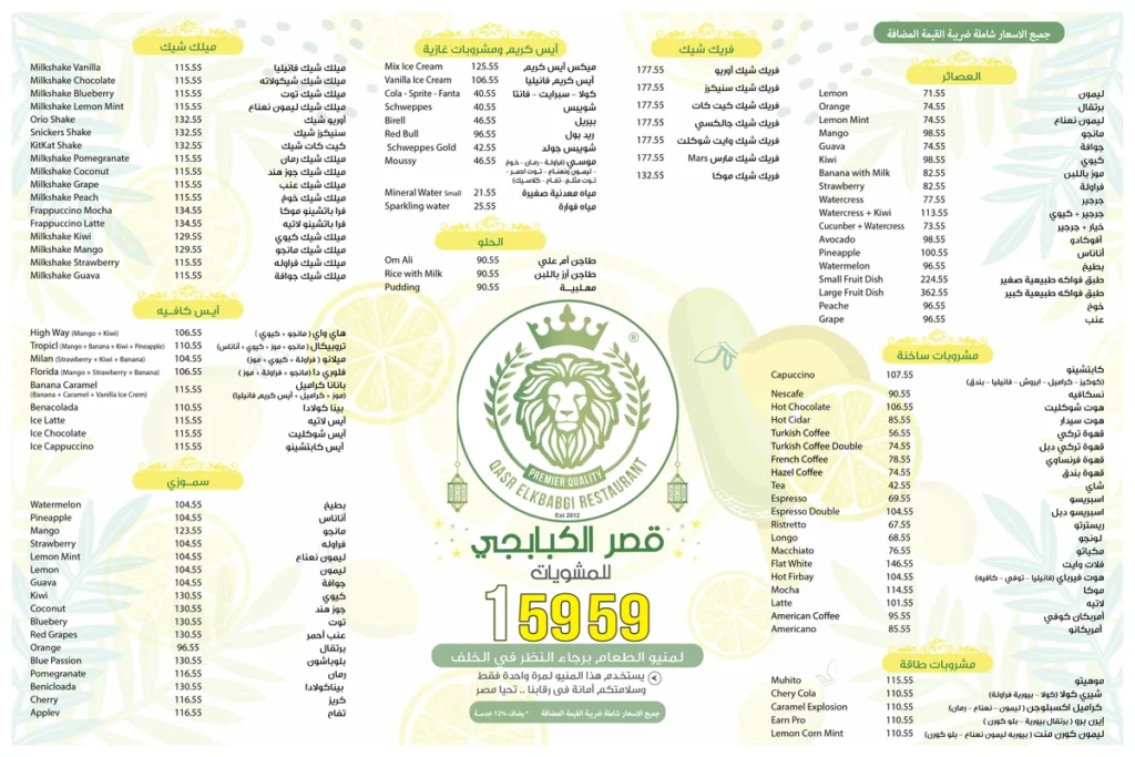 منيو قصر الكبابجي